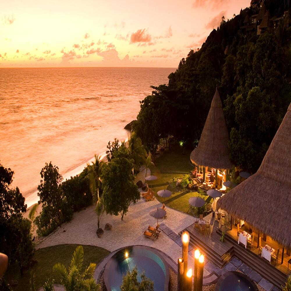 Embrace restorative luxury in private villas edging porcelain sands framed by thirty acres of forest. Exotic tropical delights of Seychelles resorts are abundant here, blending seamlessly with the landscape.
